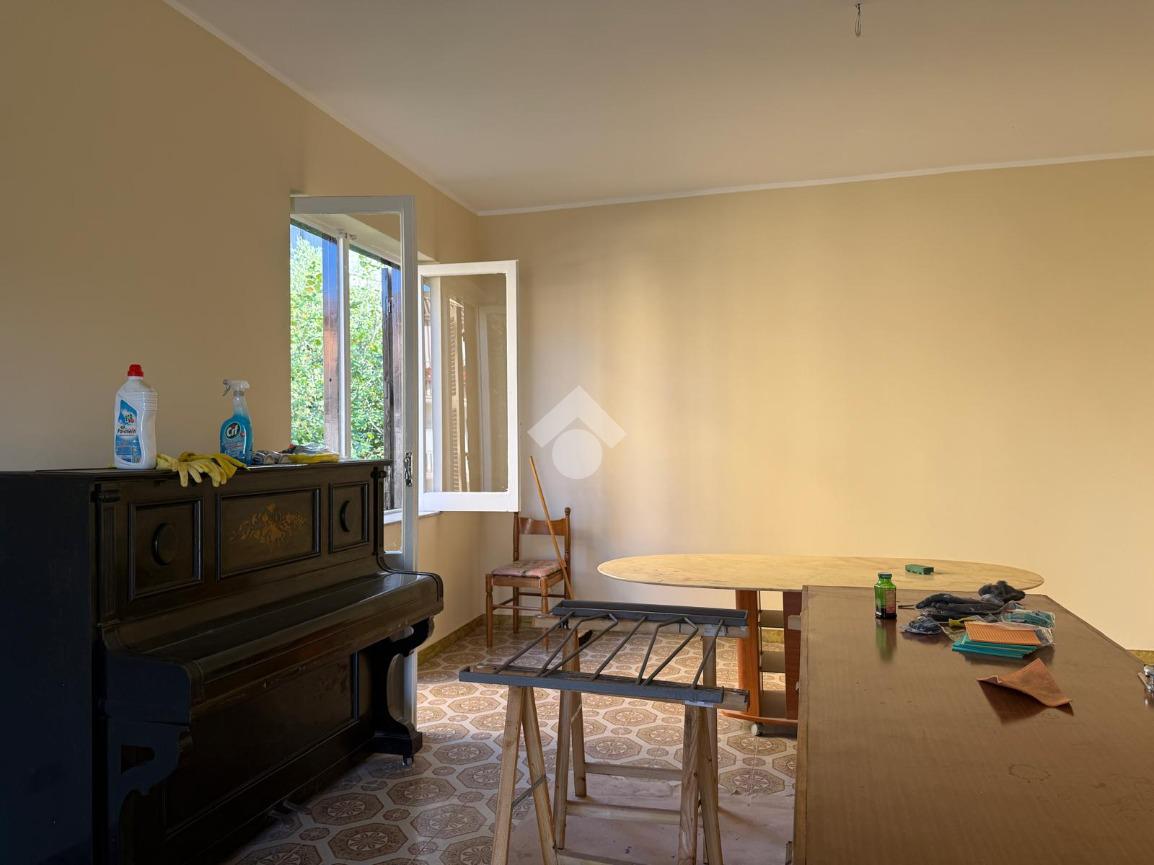 L'ingresso, accessibile tramite una scalinata, si apre su un corridoio che conduce a un ampio salone dotato di porta finestra con accesso diretto al terrazzo, ideale per momenti di relax all'aperto.