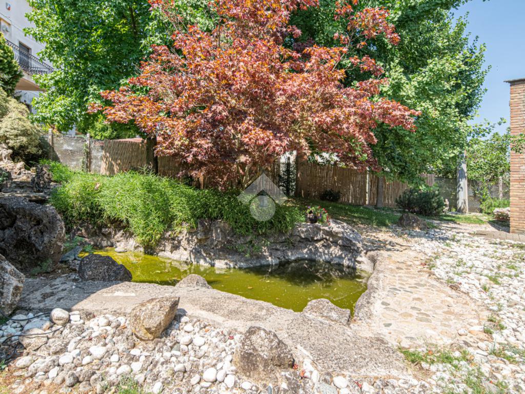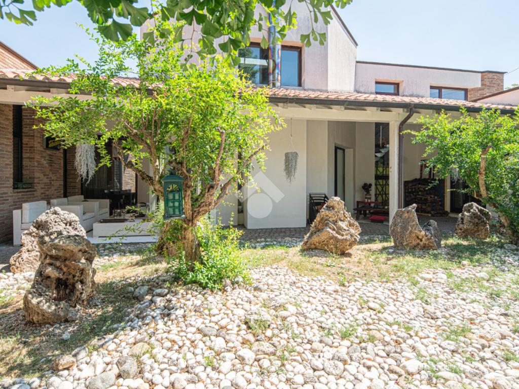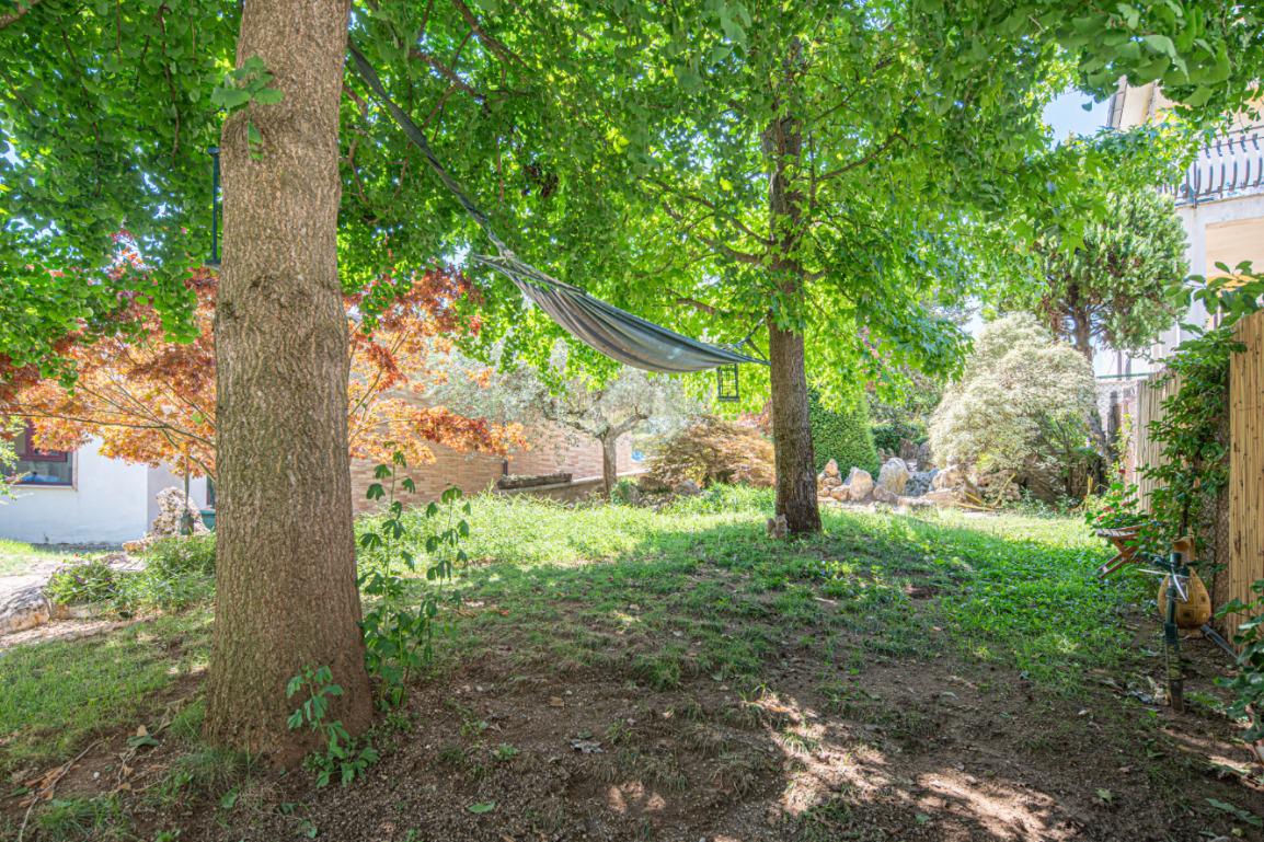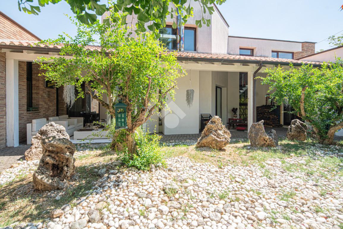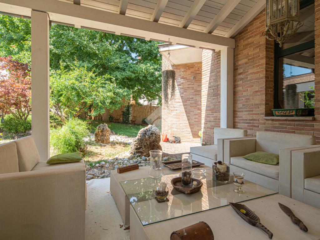 All'esterno, il giardino in stile zen offre un angolo di tranquillità e bellezza naturale, ideale per momenti di relax all'aperto.