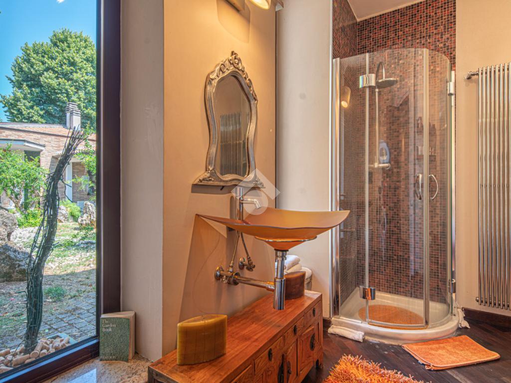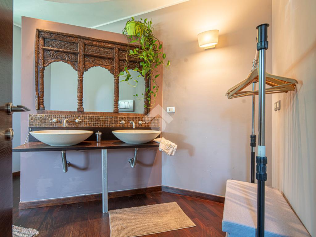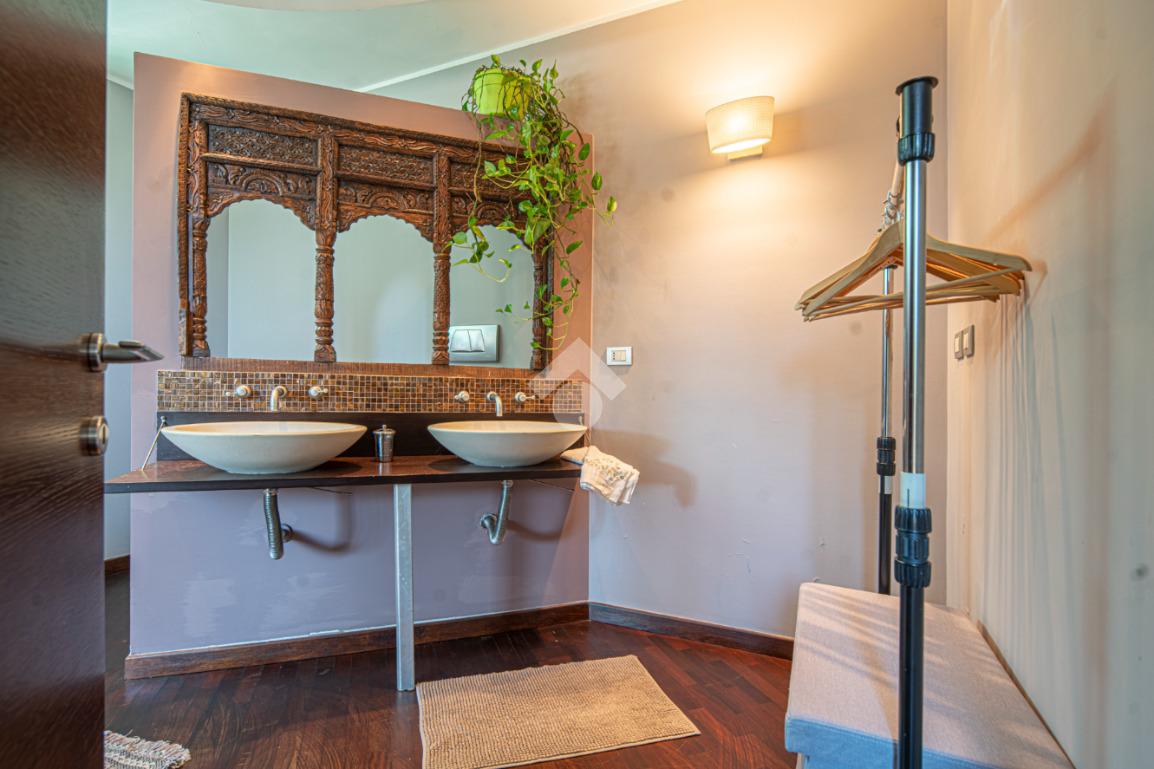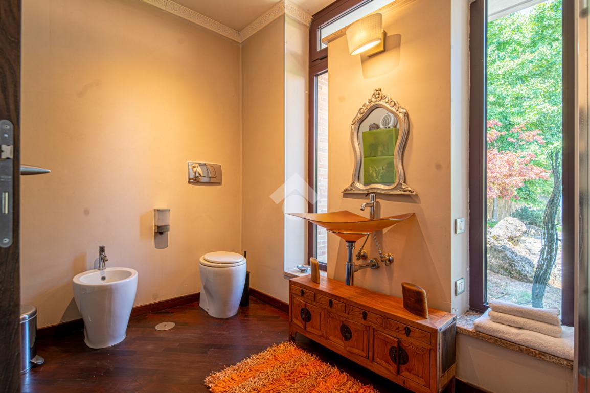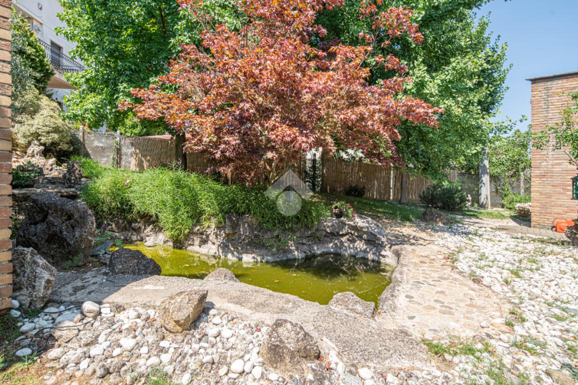 All'esterno, il giardino in stile zen offre un angolo di tranquillità e bellezza naturale, ideale per momenti di relax all'aperto.