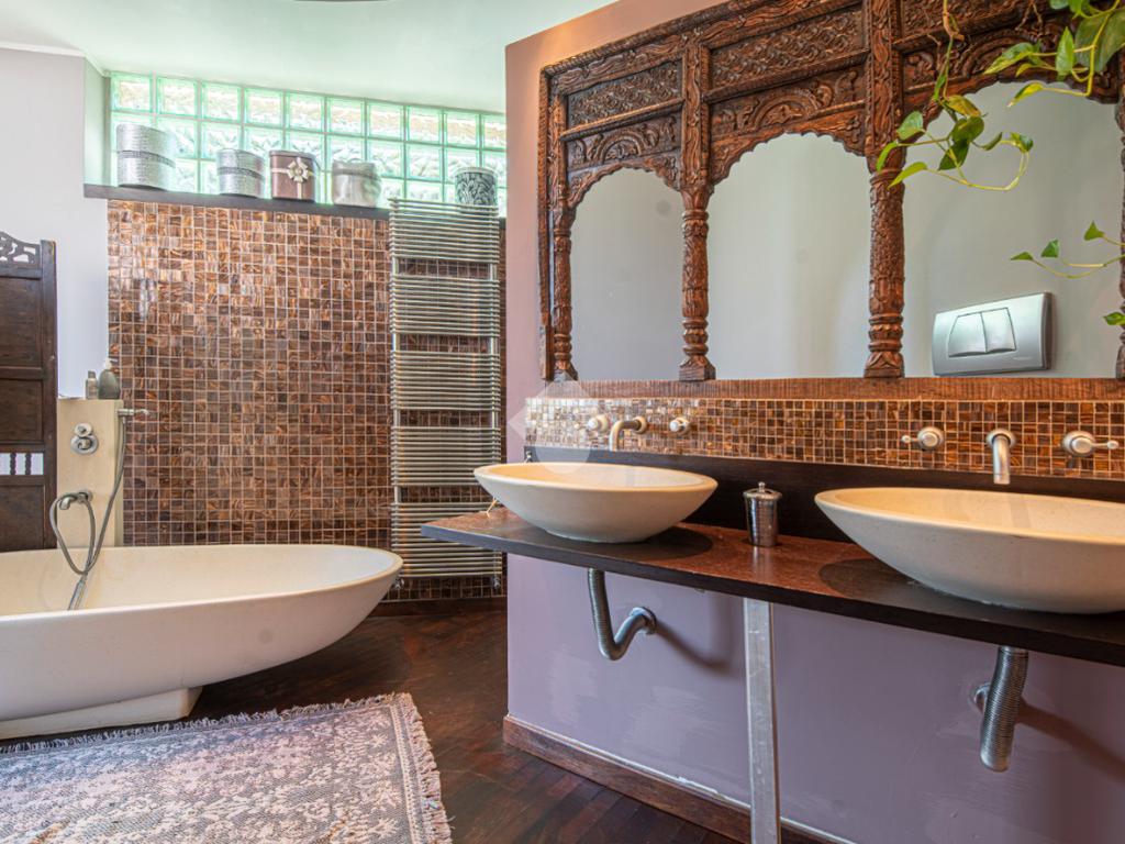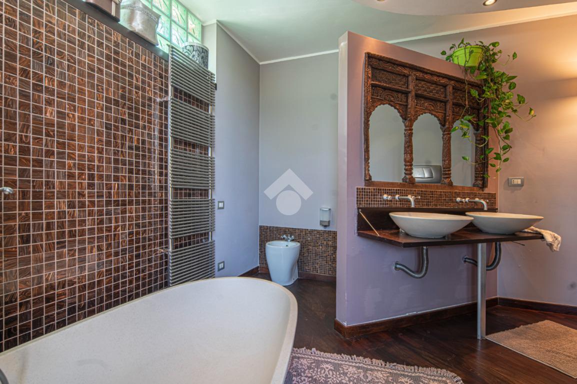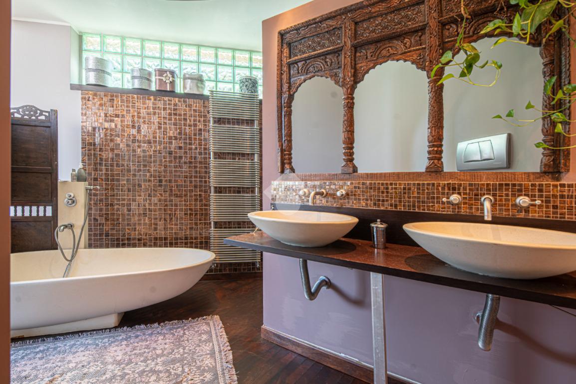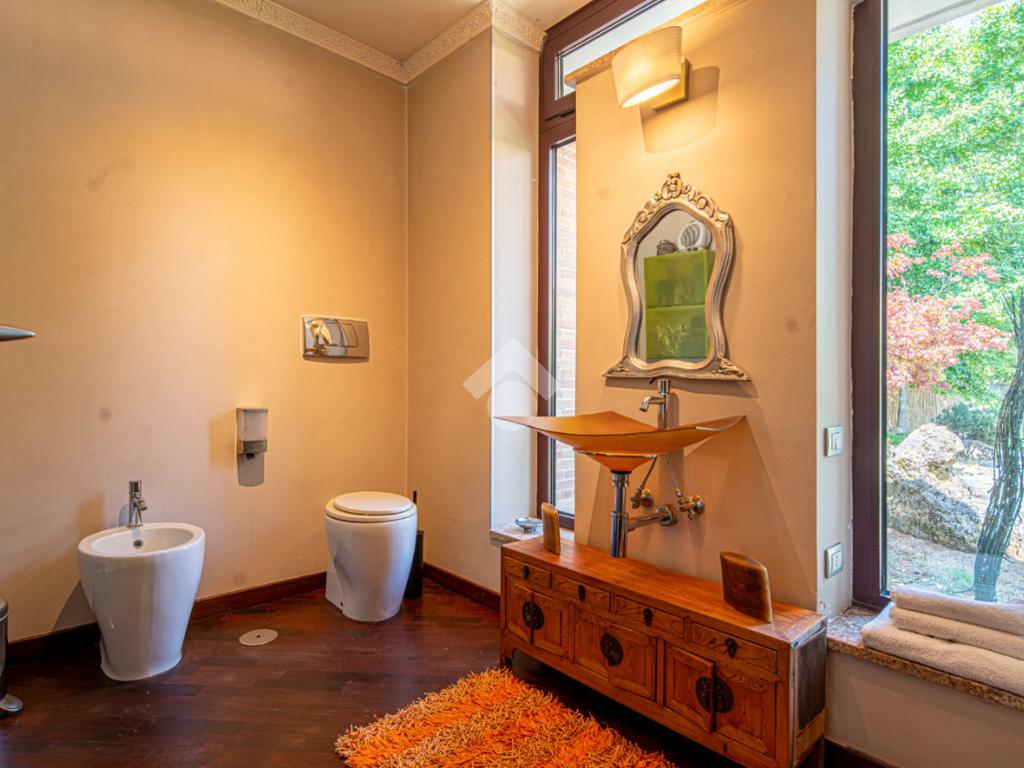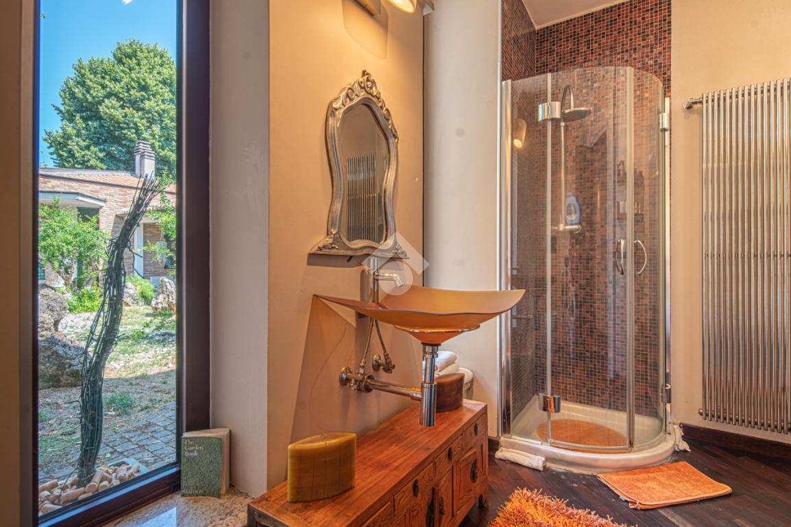 All'esterno, il giardino in stile zen offre un angolo di tranquillità e bellezza naturale, ideale per momenti di relax all'aperto.