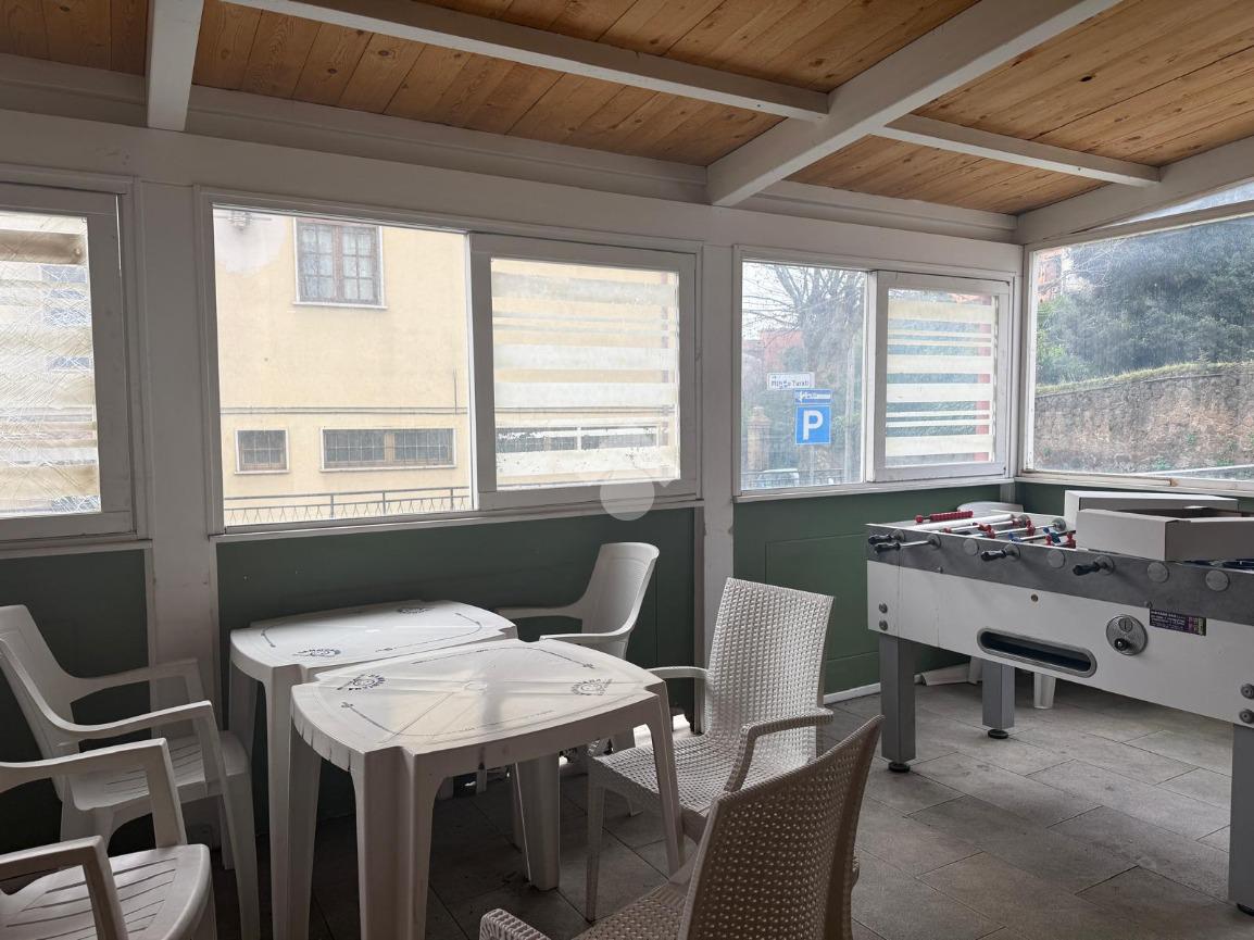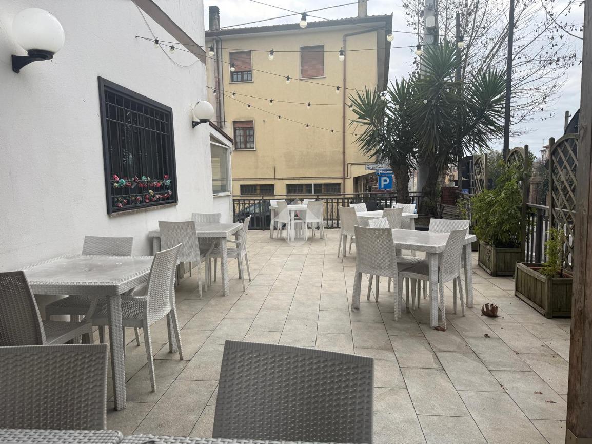 L’immobile si distingue inoltre per l’ottima fruibilità degli spazi esterni: una parte verandata, attrezzata con ulteriori tavoli, e un ampio spazio esterno frontale al locale che consente di incrementare la capienza e valorizzare la visibilità dell’attività.